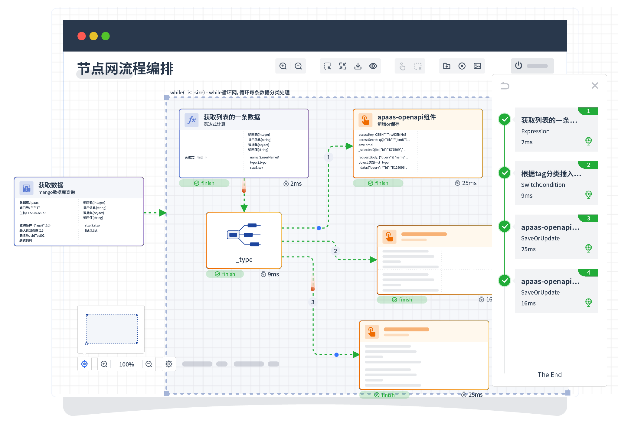 针对集成场景,,,,,,,组件定义后支持进行流程编制,,,,,,,,,,不同于传统代码方式,,,,,,,,,,,,,,通过图形化展示,,,,,,,,,支持在线调试、、、、、、、日志查看和运行回放。。。。。。。。。。。。。。