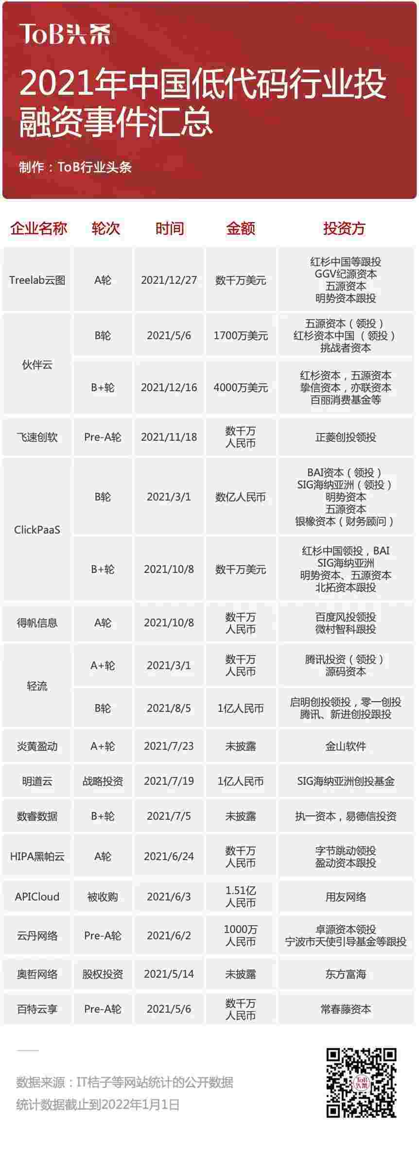 同期的国内市场同样战绩频频,,,,,,,,,,,,从2018-2020年,,,,,,中国无/低代码领域总体投融资事件共16起。。。。。。。。